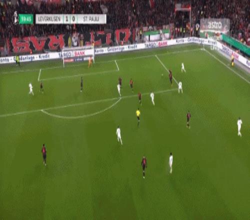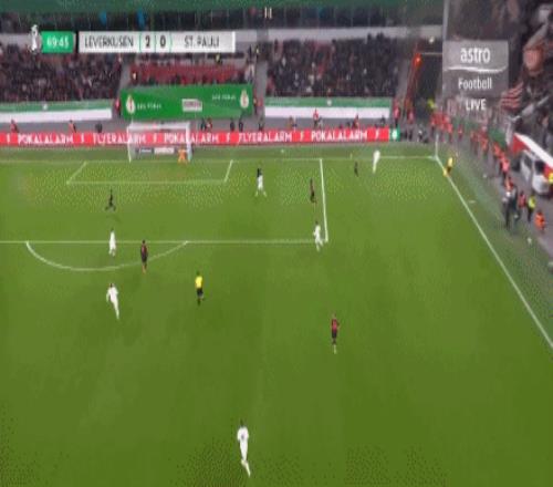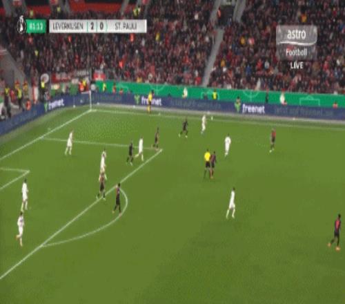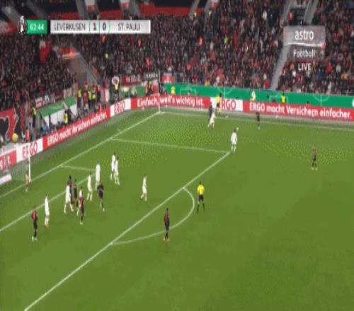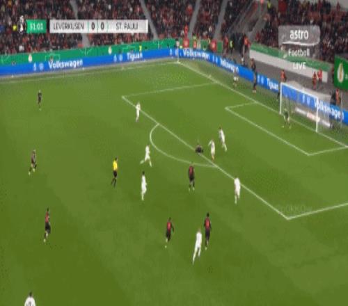 第63分鐘,擴(kuò)大比分!??藫岦c(diǎn)低射破門(mén),勒沃庫(kù)森2-0圣保利