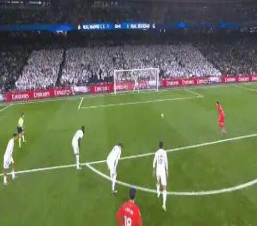 第31分鐘,皇馬左路制造機會,卡雷拉斯插上適配巴爾韋德,皇馬的領(lǐng)導(dǎo)者迅速推射破門。雖然是推射,可是皮球速度實在太快了,力度也猛對此皇社的門將無計可施。3-1。