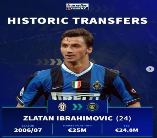 伊布,06/07賽季尤文→國米,轉(zhuǎn)會費(fèi)2480萬歐