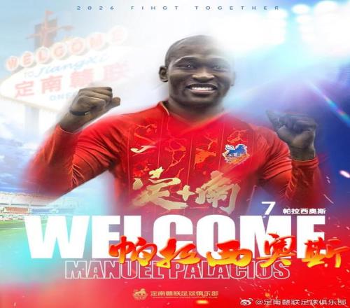 2月15日,定南贛聯(lián)足球俱樂部官方宣布,外援帕拉西奧斯加盟球隊。