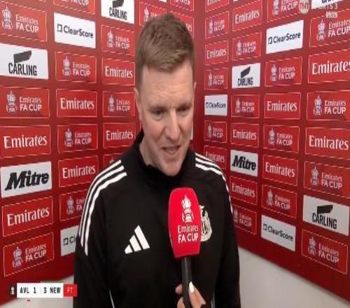 足總杯第4輪,紐卡客場3-1戰(zhàn)勝維拉,紐卡主帥埃迪-豪賽后接受了TNT體育的采訪。