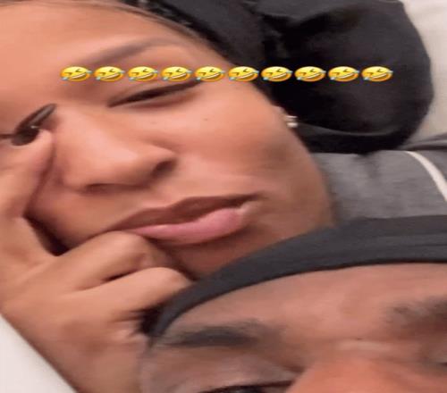 詹姆斯曬出他和妻子薩瓦娜躺在床上的自拍合影,并評論道:“
