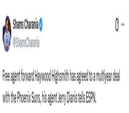 北京時間2月15日,據(jù)名記Shams報道,太陽隊(duì)將與自由球員前鋒海伍德-海史密斯簽下一份多年合同。太陽隊(duì)記約翰-甘巴多羅證實(shí)了這一消息,并表示海史密斯合同的第二年為部分保障。