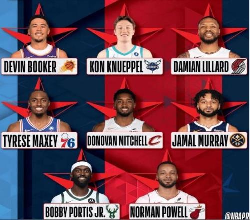 預(yù)賽當(dāng)中得分排名前三的球員,分別是布克30分,利拉德與克努佩爾均是27分,3人攜手晉級(jí)決賽。