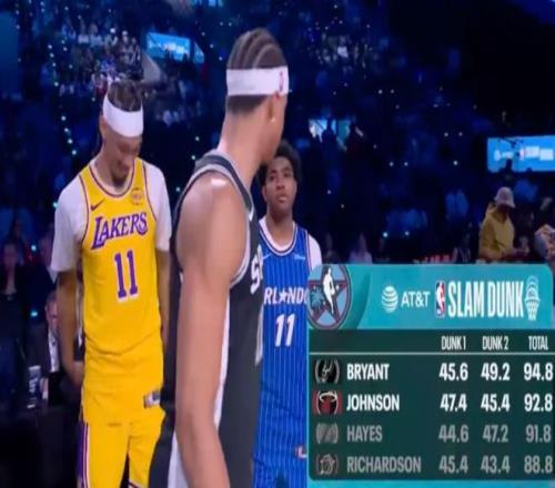 這場扣籃大賽堪稱是菜雞互啄,海斯想要罰球線起跳暴扣,結(jié)果多跨了一步等于就是一個普通的扣籃,尷尬的腳趾都要在地上摳出三室一廳,預(yù)賽第一扣也只有約翰遜的單手折疊越人暴扣有些看點。(該說不說比戈登、拉文、麥克朗的差太遠了,如果對比的話就是全程尿點)