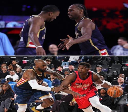 有了第一場比賽的基調,第二場的美國內戰(zhàn)同樣一上來就格外激烈。曾經放話美國老同志會努力應戰(zhàn)的杜蘭特開場就投進三分,杰倫·布朗更是火力全開頻繁沖擊,老同志組成的條紋隊一度領先到8分。