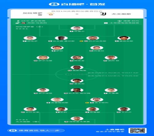 體育播報2月18日宣 歐冠1/8決賽附加賽首回合,尤文圖斯客場對陣加拉塔薩雷,賽前首發(fā)名單公布。