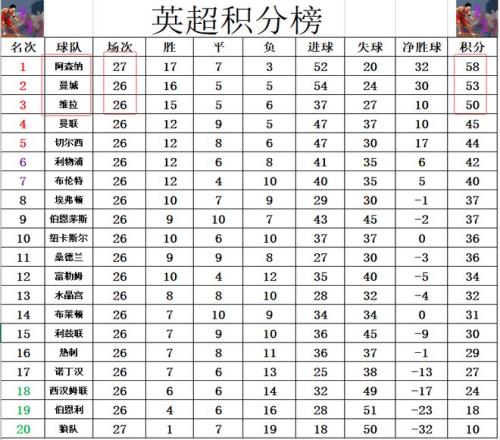 英超最新積分戰(zhàn)報冷門!阿森納慘遭副班長絕平再給曼城追趕機會
