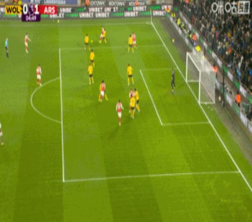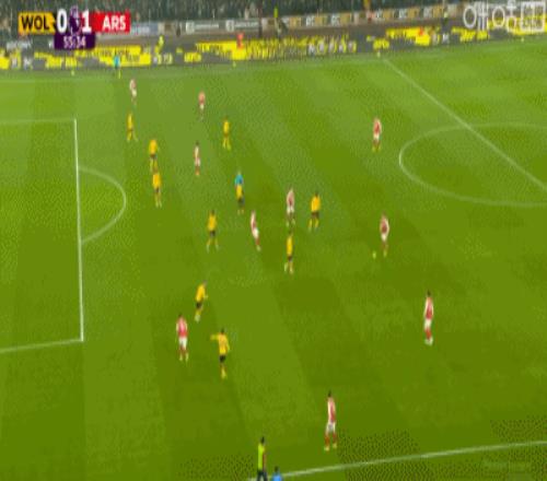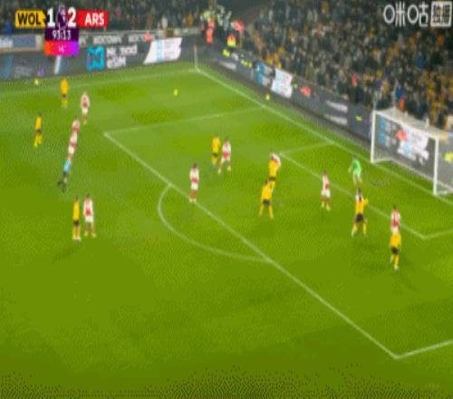 2球領先的阿森納防線有些松懈,5分鐘后狼隊左路壓上,連續(xù)的傳遞,圣地亞哥禁區(qū)前沿接球轉移到右側,完全無人防守的雨果,禁區(qū)右側前沿接球橫切調(diào)整兩步后左腳大力兜射,皮球直掛球門遠端死角,狼隊1:2快速扳回一球。第66分鐘,阿森納前場反搶再攻,馬丁內(nèi)利點球點處近距離轉身大力掃射,若澤薩奮勇地用腳將球擋出。補時階段,狼隊左路壓上,雨果禁區(qū)邊上拿球回傳,馬內(nèi)禁區(qū)角上策應斜吊門前,阿森納后防失誤送上大禮,加布里埃爾和門將配合不默契,兩人搶到了一塊,球沒有打遠,落到點球點右側埃多齊跟前,埃多齊笑納大禮迎球大力凌空掃射,剛替補登場的卡拉菲奧里門線上奮力一擋,皮球擊中門柱內(nèi)側彈入網(wǎng)窩,狼隊2:2絕平阿森納。
