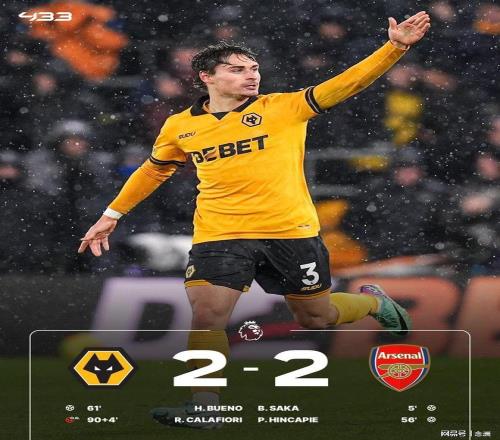 英超第31輪,阿森納客場(chǎng)2-2狼隊(duì),先賽一場(chǎng)情況下5分優(yōu)勢(shì)領(lǐng)跑。薩卡破門(mén)打破15場(chǎng)進(jìn)球荒,賴(lài)斯助攻,因卡皮耶打入個(gè)人處子球,圣地亞哥-布埃諾扳回一球,薩卡傷退,埃多齊補(bǔ)時(shí)絕平。